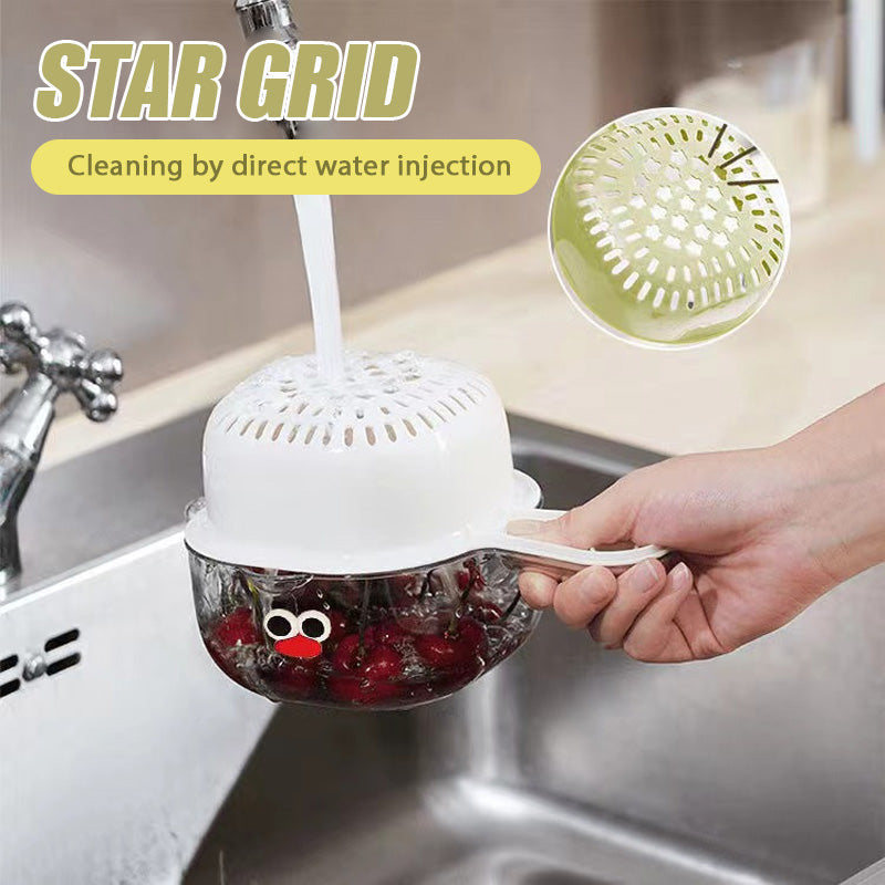 Featuring a playful star-patterned mesh, this basket allows you to easily rinse and shake your produce. The integrated handle makes washing fruits and veggies a breeze, saving you time and effort.
