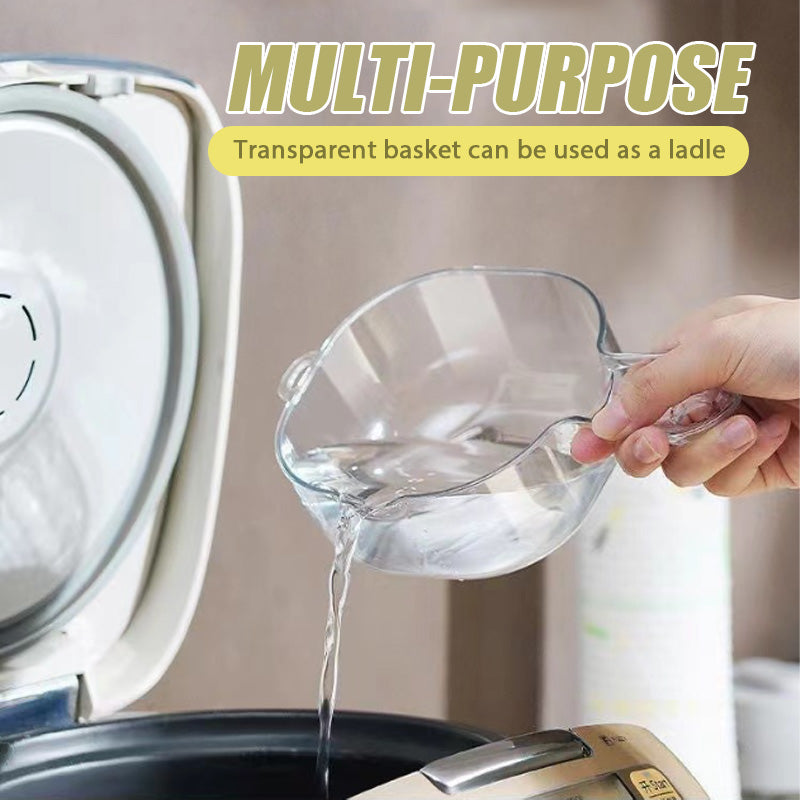 Beyond washing, this transparent basket can double as a water scooper for cooking or rinsing rice. Its sturdy build makes it a reliable tool for various kitchen tasks.