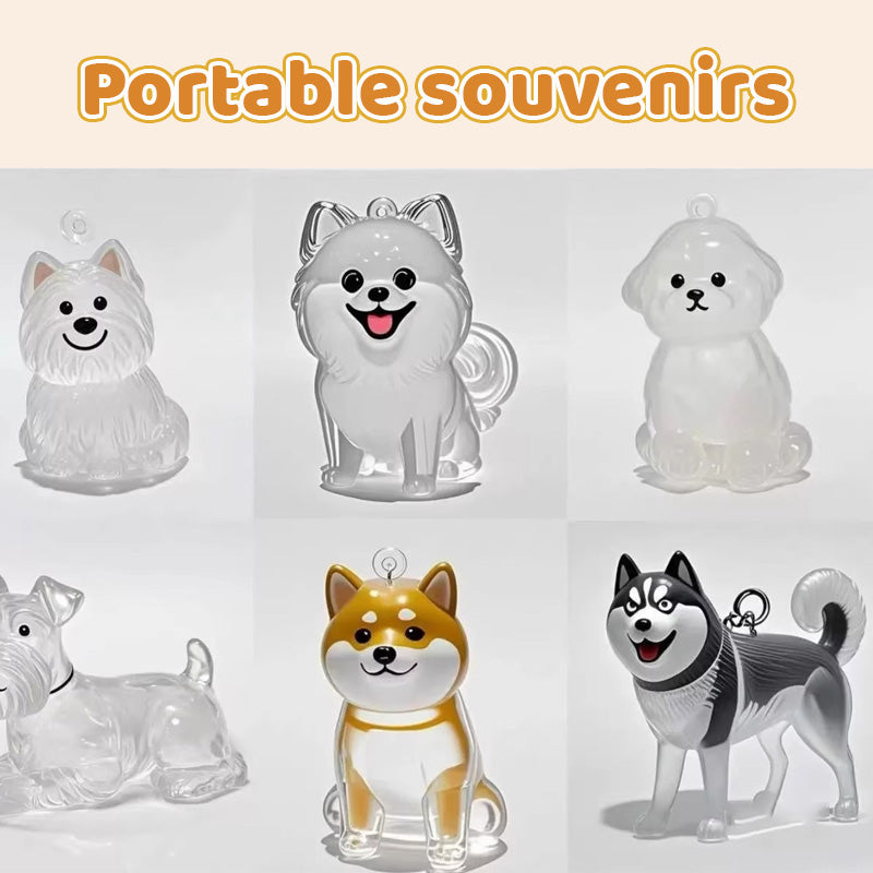 This is a hair memorial box designed for pet lovers. The transparent shell is matched with a puppy shape design, which is gentle and cute. The built-in space can store pet hair, beards and other memorials. It has a ring and can be used as a pendant, keychain, and portable accessories to protect the care and longing at all times.