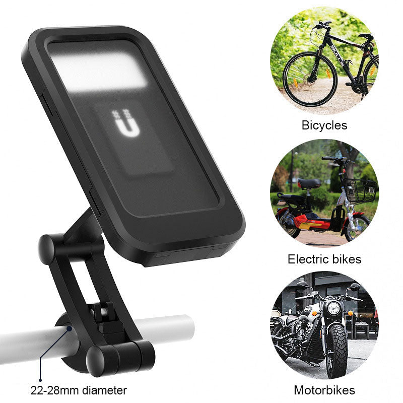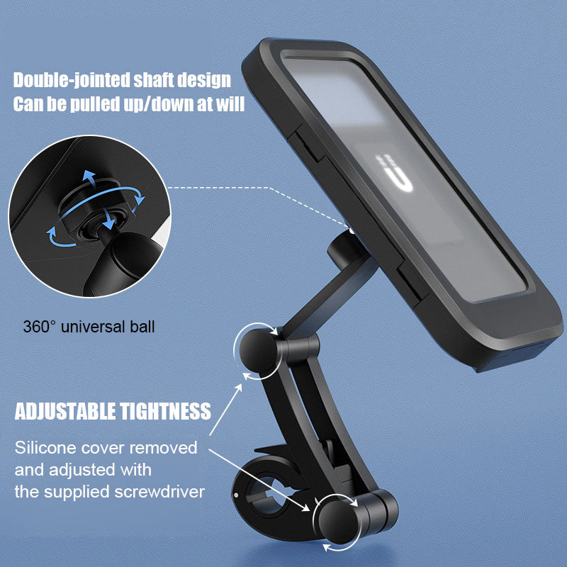 【Waterproof protection】 The bracket adopts a fully enclosed design, and professional waterproof tape is used for the sealing joint, providing IPX6 waterproof performance. No need to worry about rain, snow and mud damaging your phone.