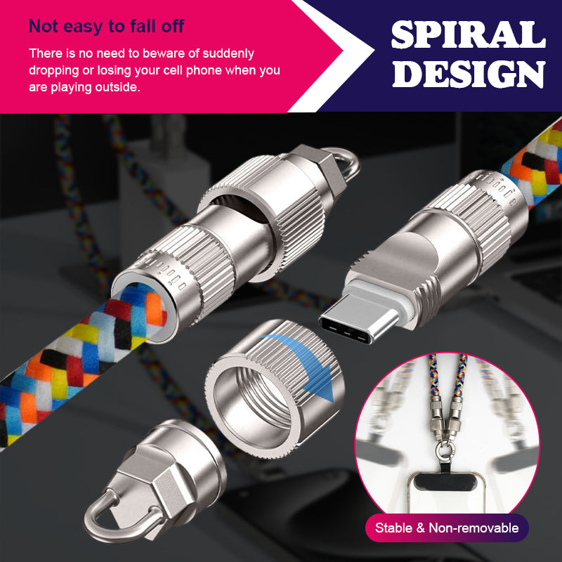 Secure and Durable: The spiral design offers the flexibility to switch between charging and lanyard functions effortlessly. Made with a zinc alloy lock buckle, it ensures your phone remains securely attached and prevents accidental drops.