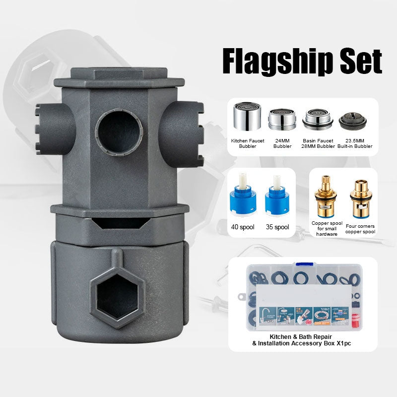 🔥 Flagship Set – Multifunctional Wrench + 4 Faucet Spouts + 4 Valve Cores + 1 Tool Box